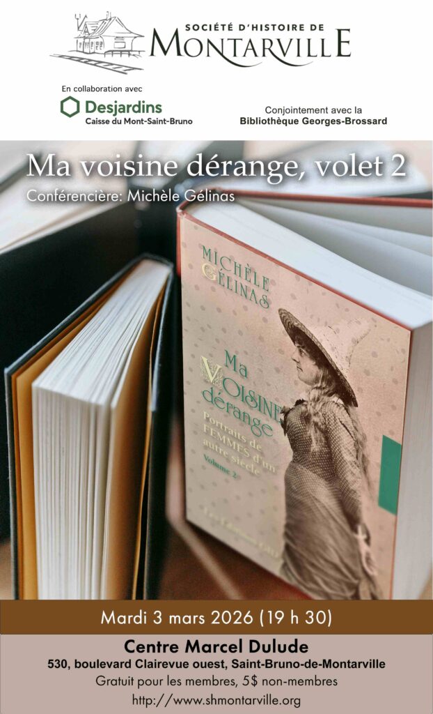 Ces récits biographiques de femmes ayant vécu au Québec pendant la période coloniale anglaise (1760-1867) surprennent. Qu’elles aient voulu se dépêtrer d’une situation fâcheuse, améliorer leur sort ou simplement s’affirmer, ces histoires nous permettent de voir nos aïeules dans leur intimité et, ensemble, elles éclairent la condition féminine de l’époque. La conférence « Ma voisine dérange » est constituée de cas du volume 2 de « Ma voisine dérange, portraits de femmes d’un autre siècle » de l’auteure et conférencière Michèle Gélinas.